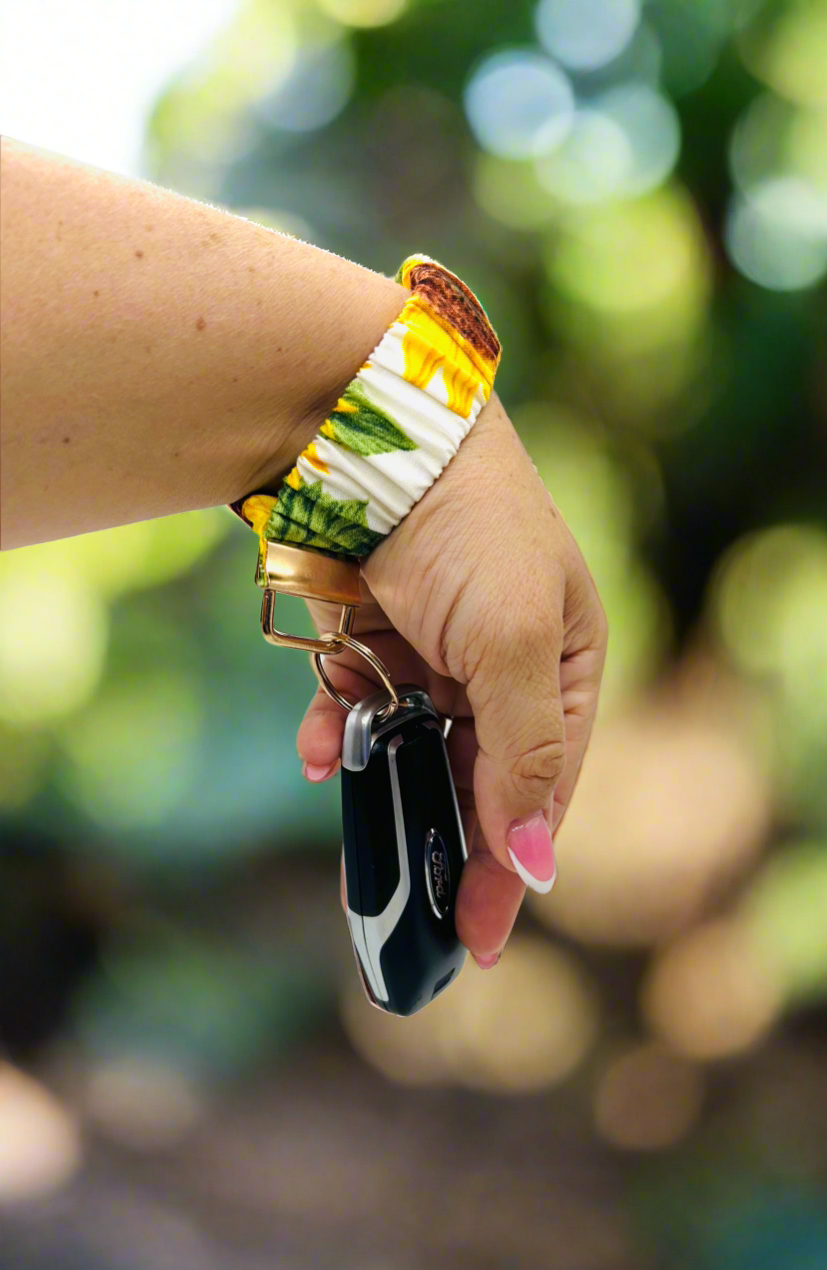Sunflower print! 🌻 This strong, long-lasting and aesthetically pleasing design is a necessary accessory. From traveling, hiking through the mountains, to a leisurely walk on the beach, SCRUNCHKEYS makes it effortless to go anywhere without the worry of losing your important belongings.